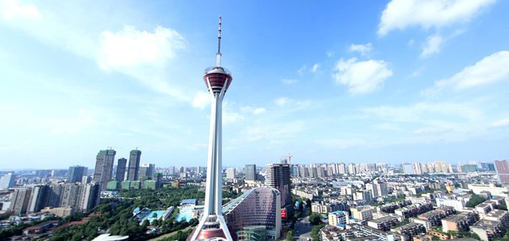 锦绣天府塔,又名娇子塔,四川广播电视塔。占地10亩,塔高339米,西部第一高塔。作为四川省和成都市的地标性建筑,塔内8000平方米用以开展高空旅游、餐饮娱乐、室内外观光等,并为城市提供景观光彩照明。